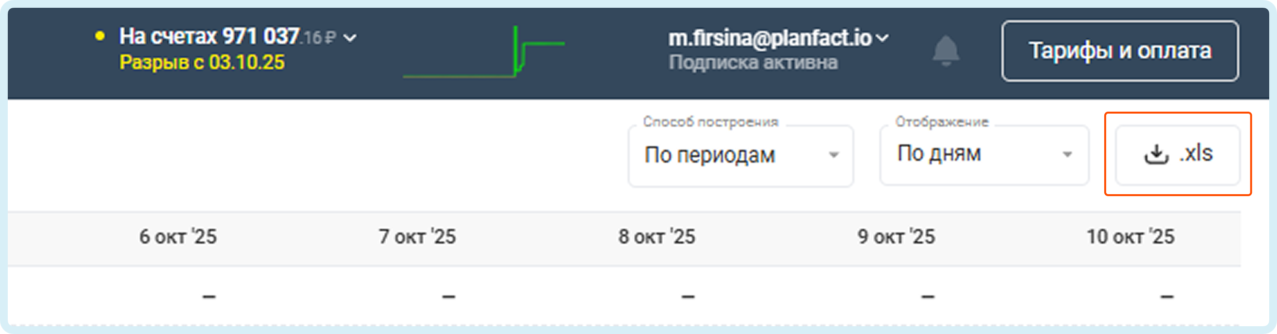 1. Сформированный любым способом отчет ДДС можно экспортировать в Excel - значок экспорта в верхнем правом углу.