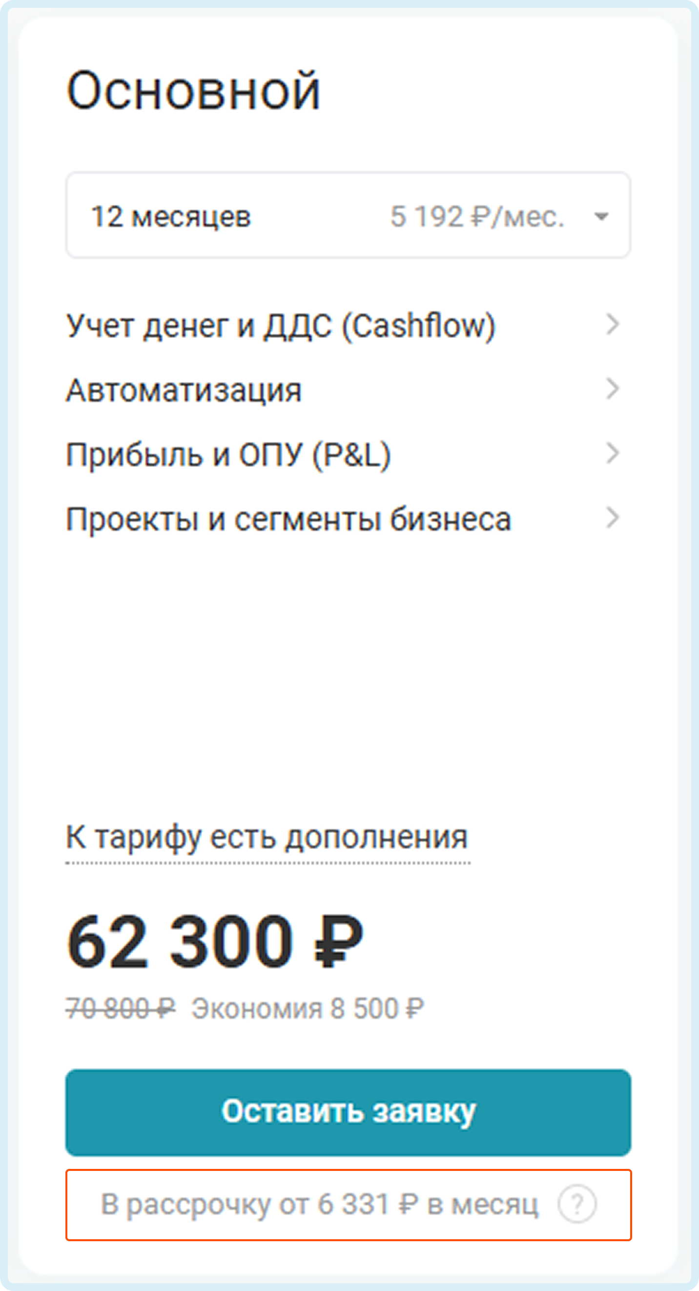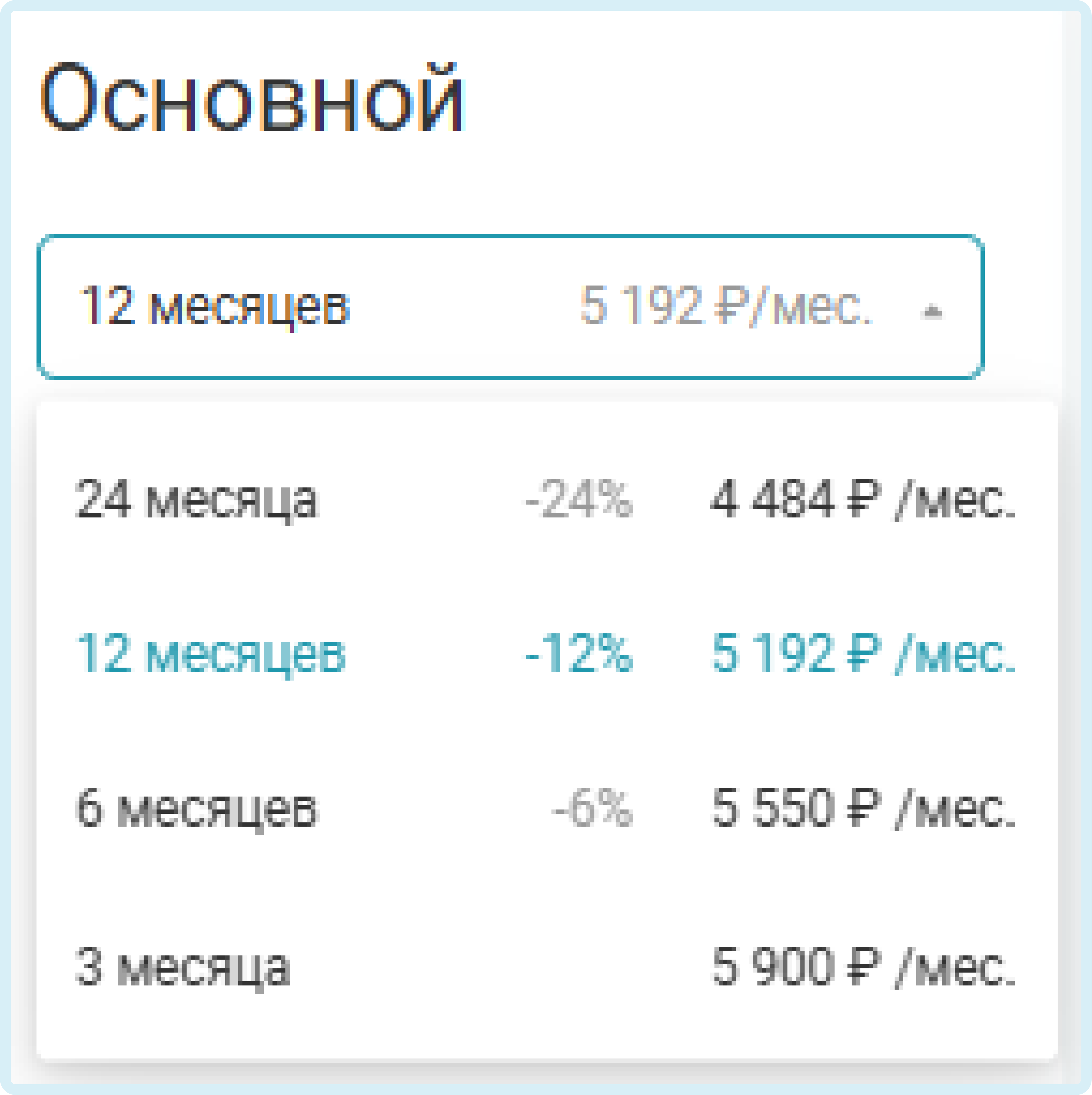 3. Выберите период оплаты (на скриншоте цены для тарифа Основной):