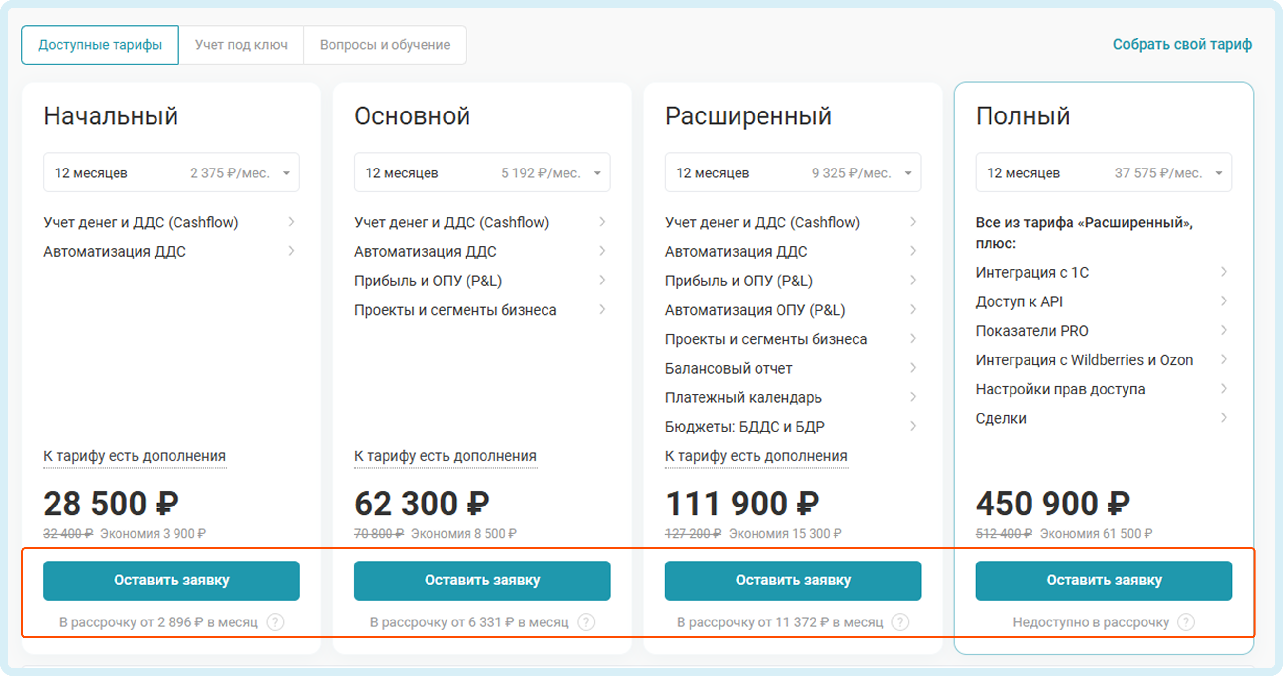 2. Выберите нужный тариф: