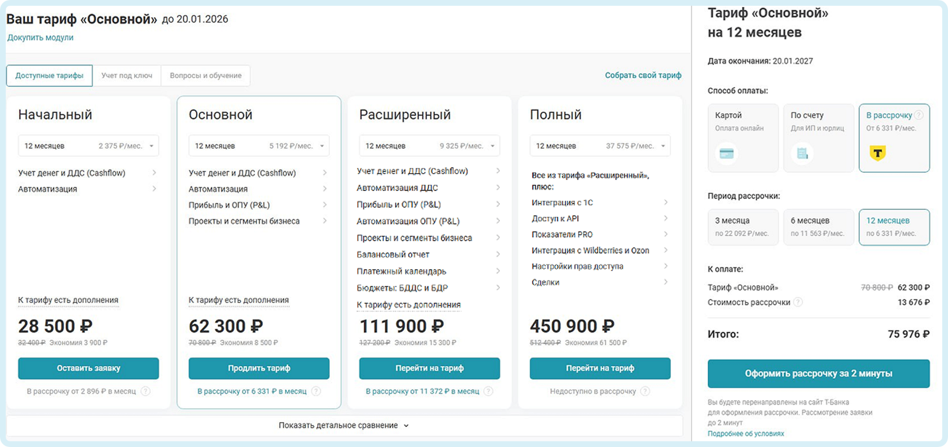 3. Выберите период оплаты (на скриншоте цены для тарифа Основной):