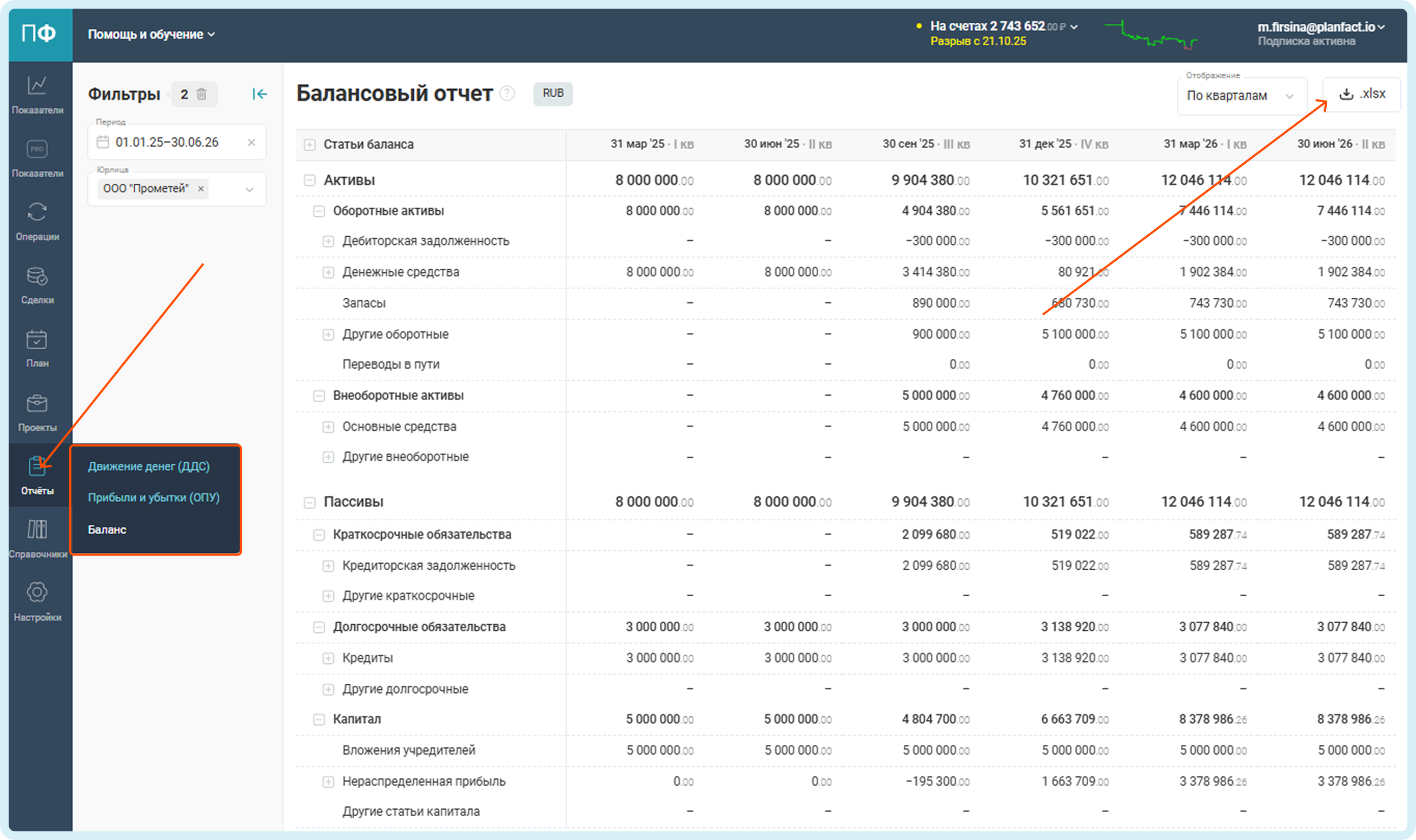 Теперь в ПланФакте можно выгружать отчет Баланс в формате Excel — быстро, удобно и без лишних действий.