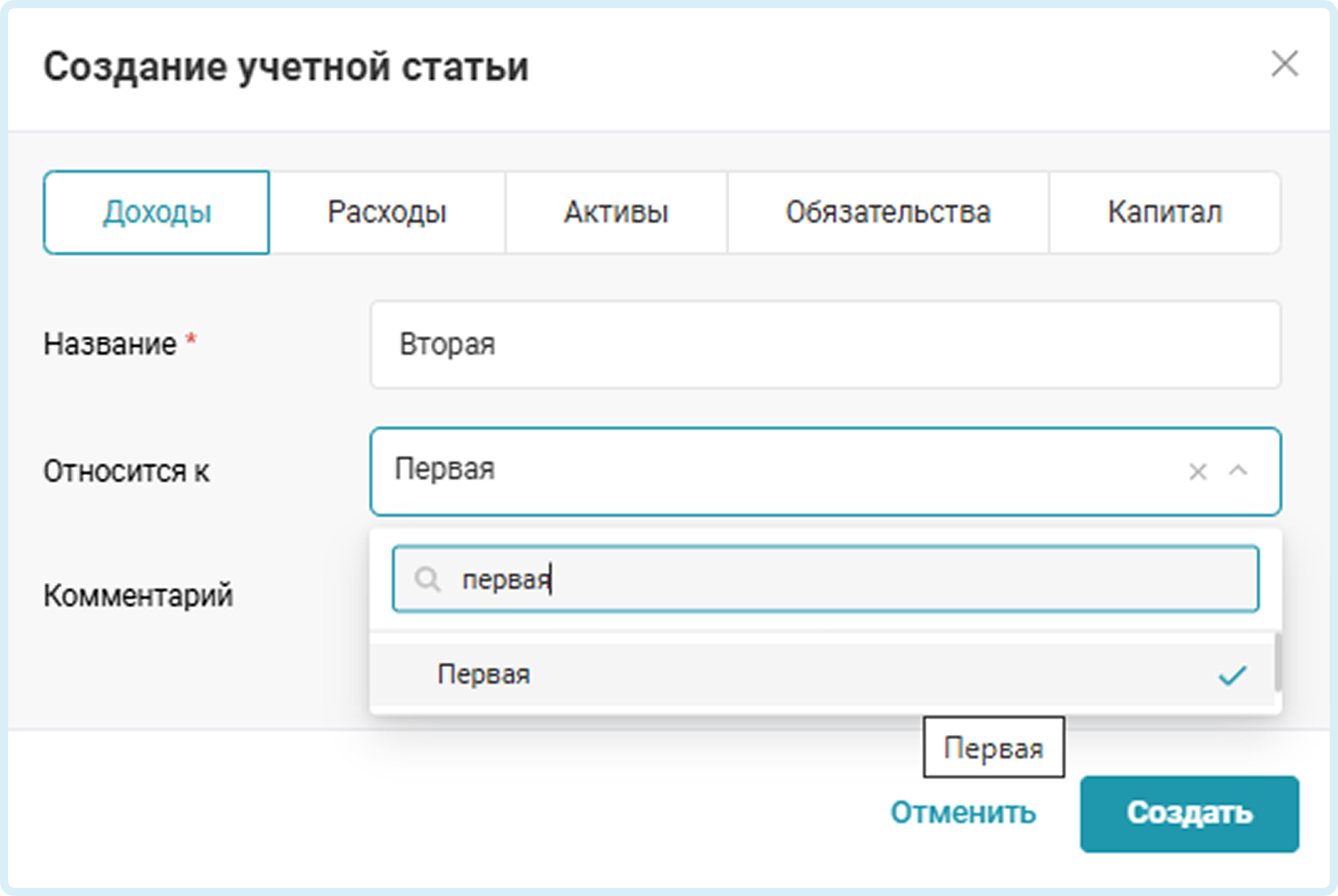 В появившемся окне укажите раздел, название новой статьи и при необходимости Родительскую статью. Также можно внести свой комментарий.