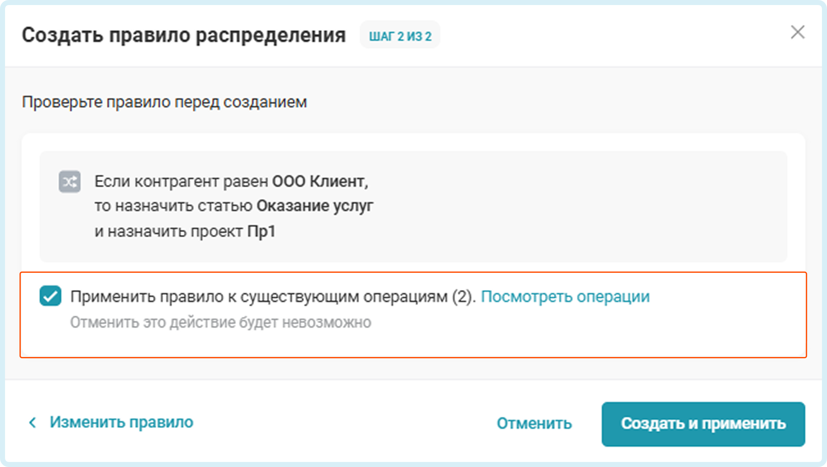 ☝️ Обязательно изучите эту информацию, чтобы не допустить ошибочного изменения операций. Отменить примененное правило нет возможности.