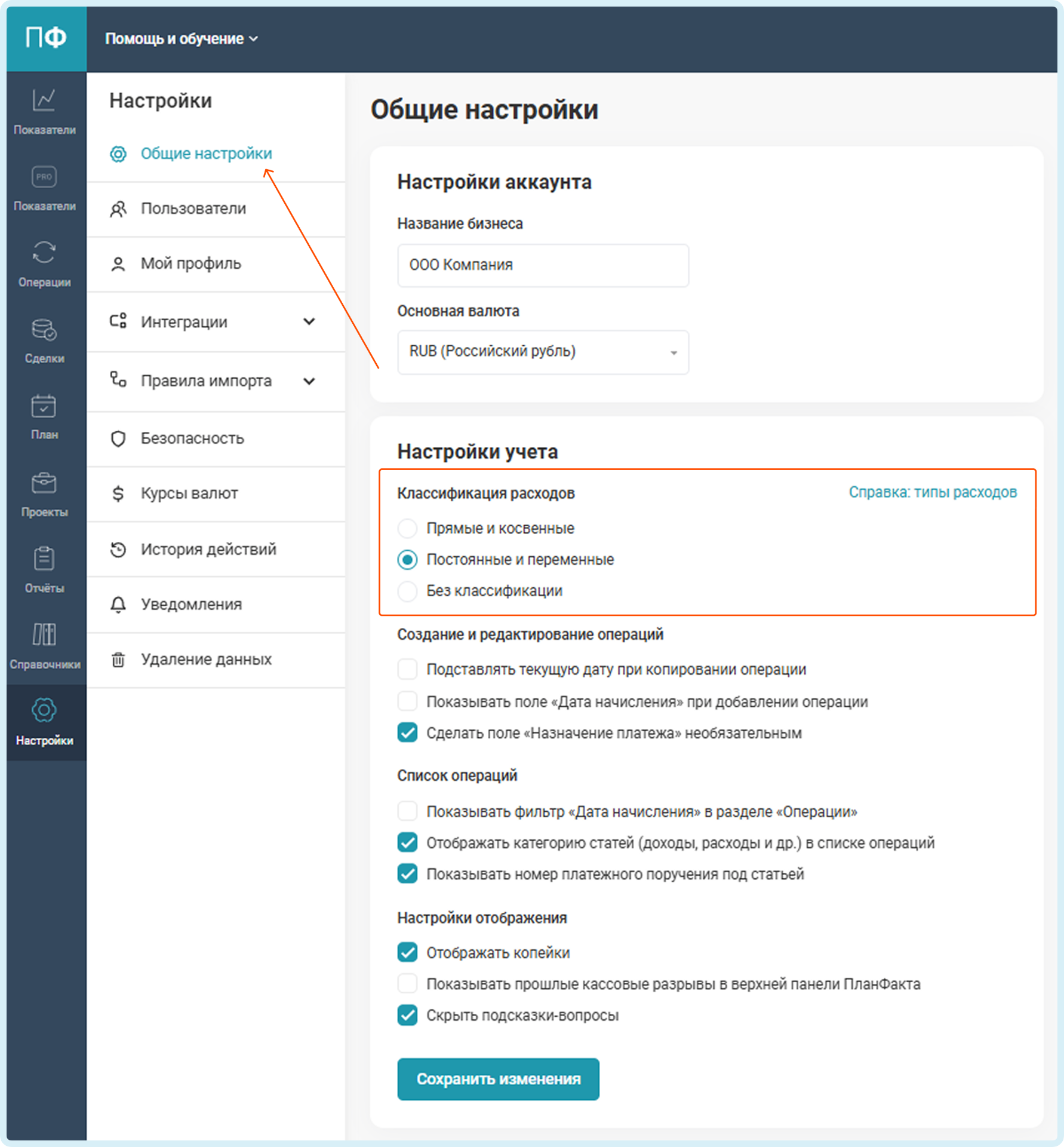 Применить одну из этих классификаций к Вашему аккаунту очень просто, для этого зайдите в раздел Настройки - Общие настройки: