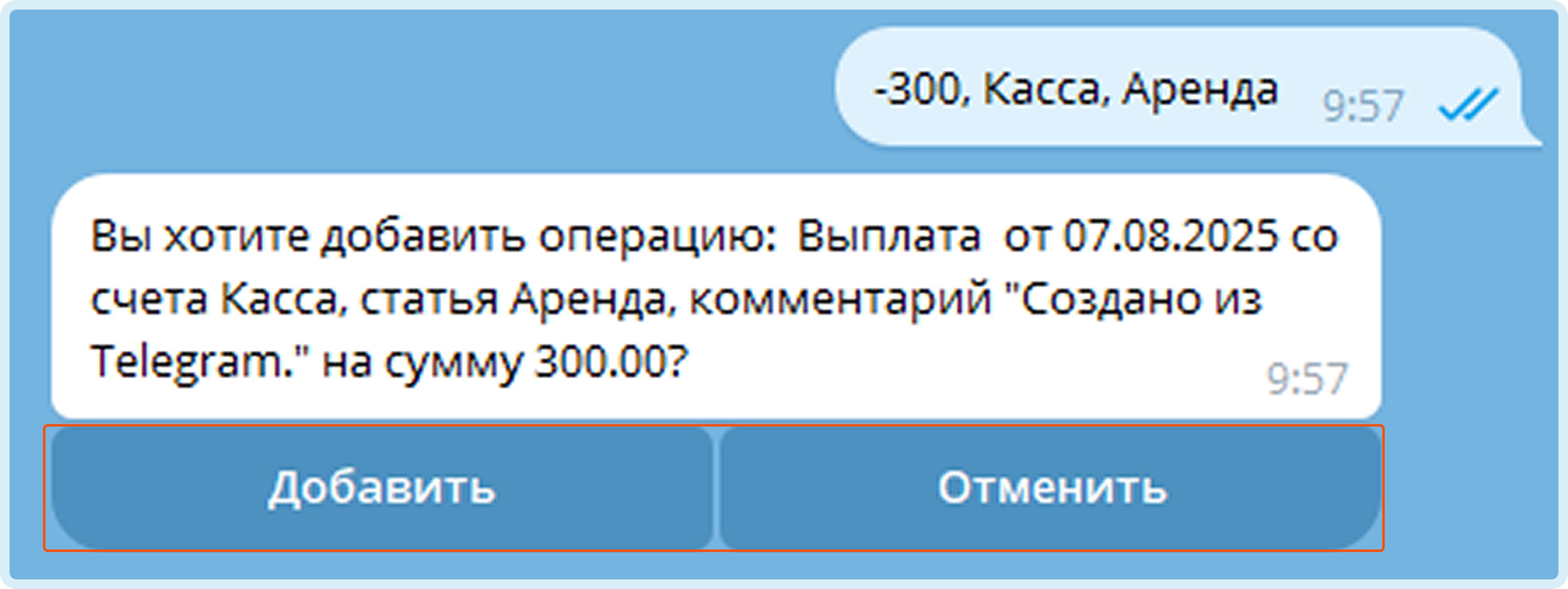 В результате на расчетный счет Касса добавится операция Выплата на сумму 300 руб. от текущей даты по статье Аренда.