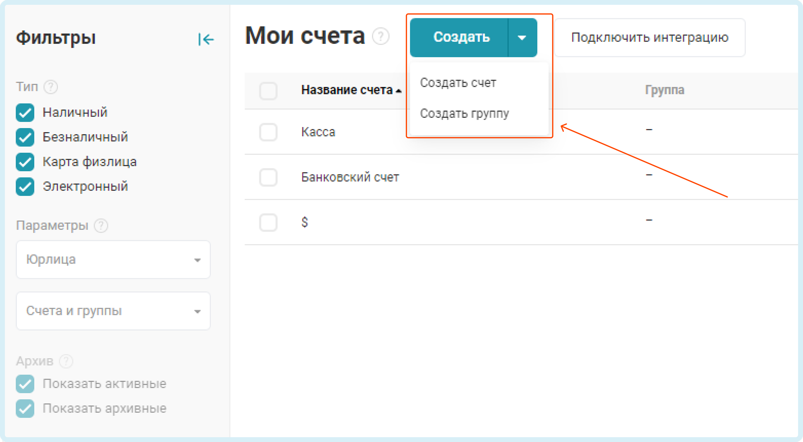 Создайте свою первую группу счетов